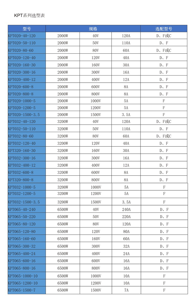KPT系列直流電源是ATE系統(tǒng)集成、實驗室測試、車載設備測試、太陽能逆變器測試、DC/DC轉換器測試、汽車電子、引擎啟動測試、超導測試、電機測試、電池充電模擬、電壓/電流傳感器校準、激光器測試及供電、電子產品生命周期測試等應用的選擇。
